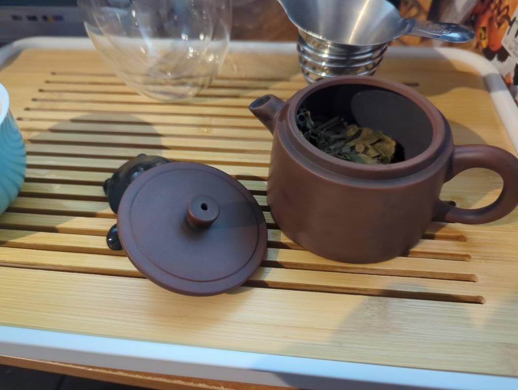 B.Put pot in pan with warm water,boil with medium heat for 5mins,after that put 50-150g tea leaves to boil 10mins(the tea leaves kind is better the one you will use the pot to brew)